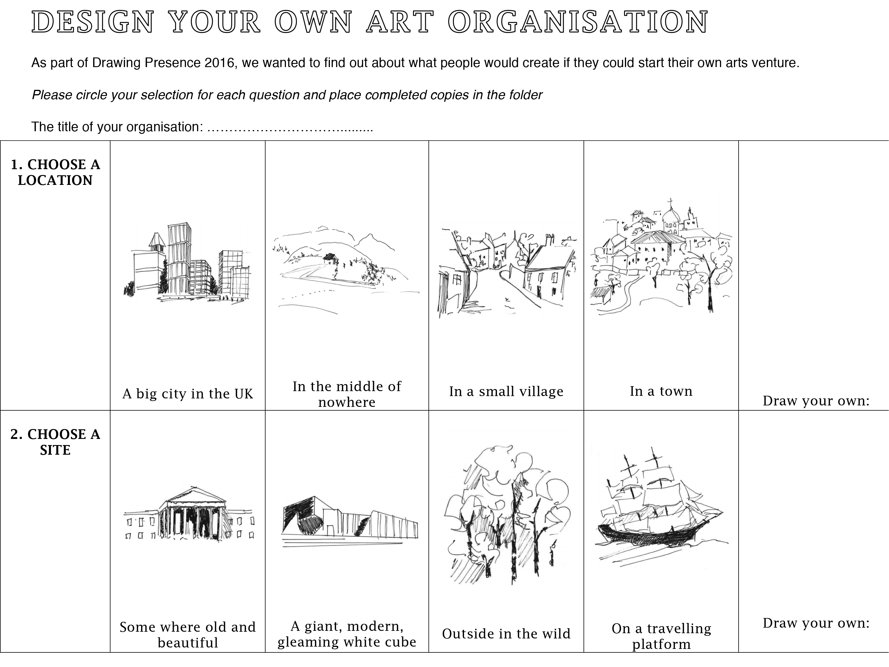 We have produced various resources for young artists to help share our experience of initiating and organising projects on a DIY level. These are made freely avaialable for individual artist use here, please contact us if you would like to use something in an educational setting or would like us to produce something tailored.